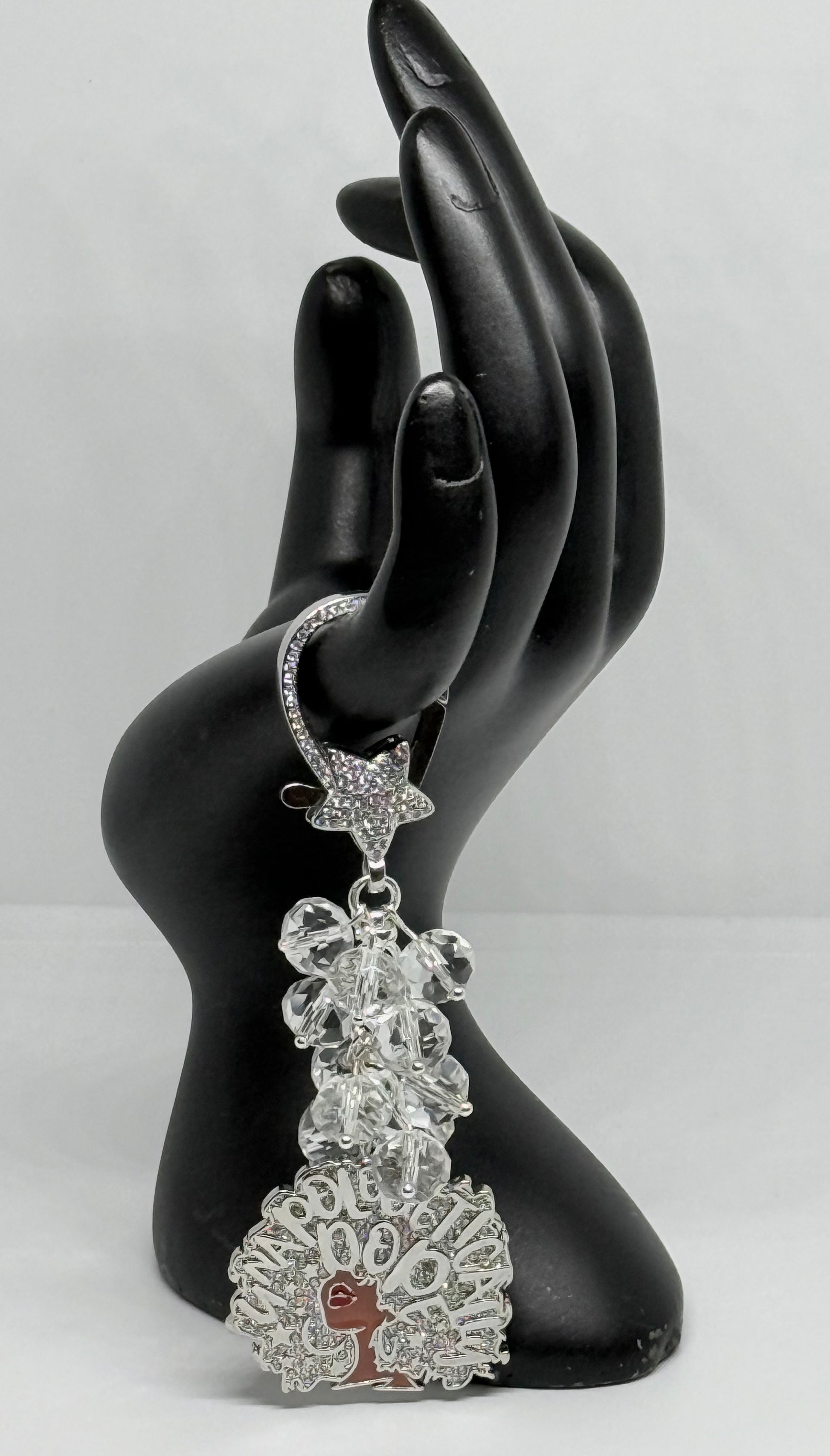 This Charm is 4" on Silver Plated Chain with Hand Bead Crystal bead and a CZ Charm on a CZ Star Lobster hook.