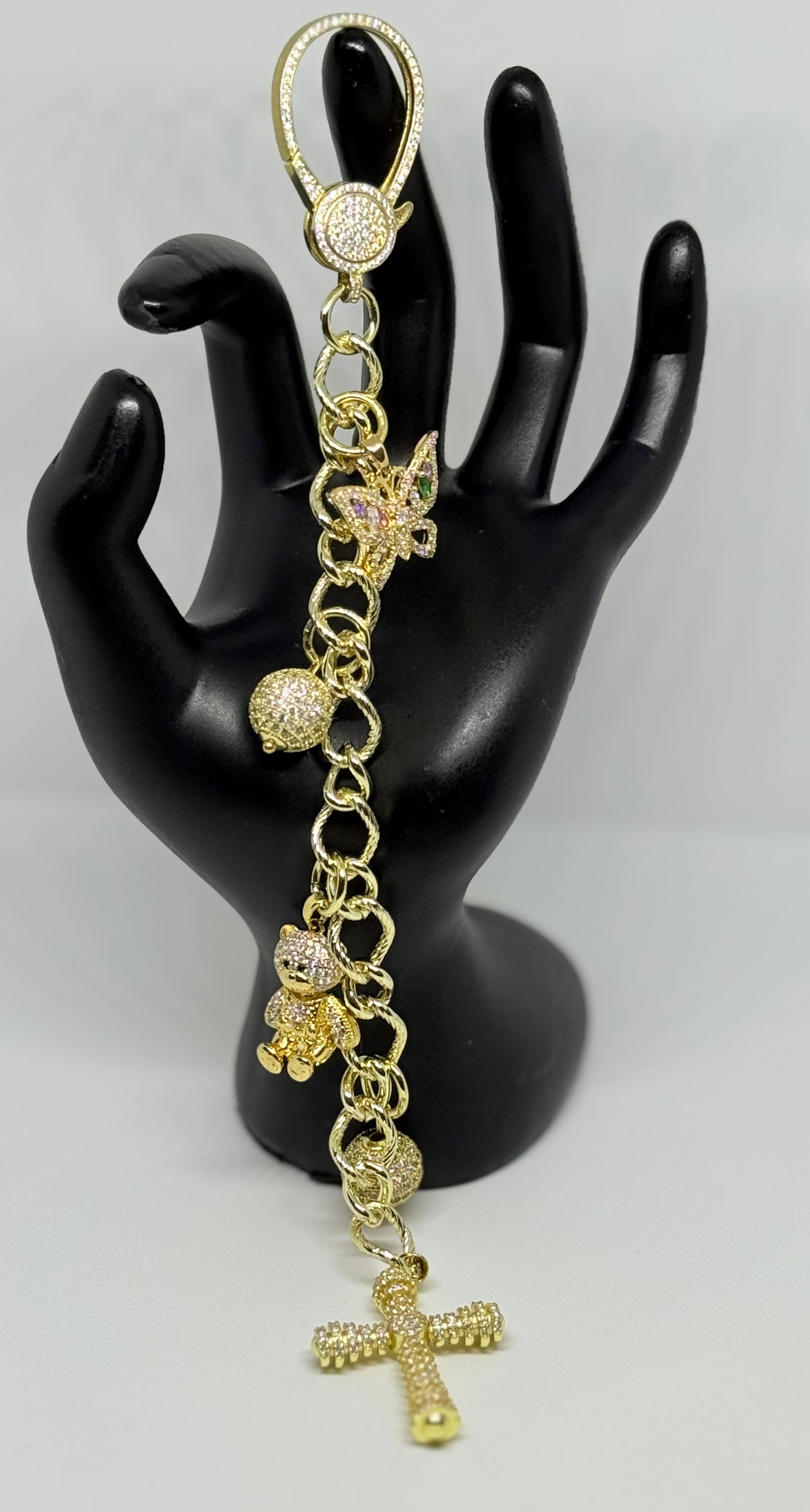 This Luxury Charm is 9" on Gold Plated Chain with all CZ Charms and large CZ Lobster hook.