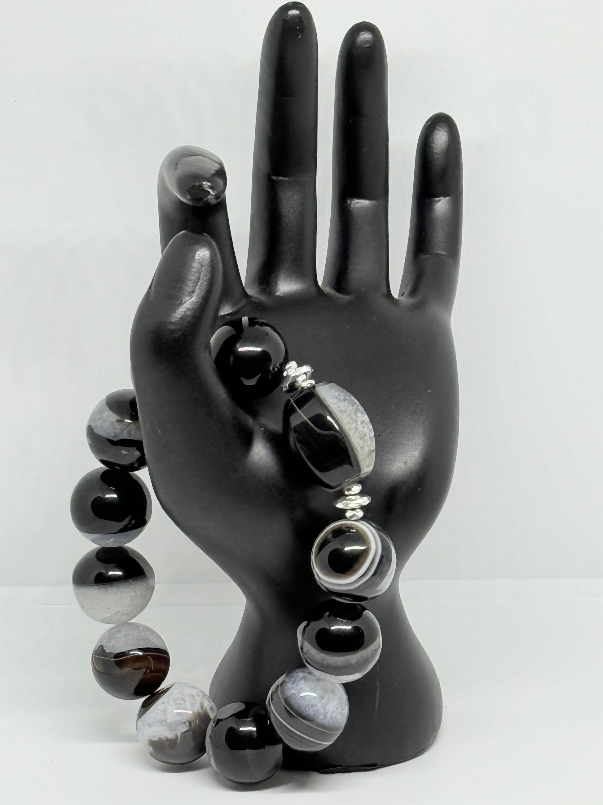 This Agate bracelet is made with 18 mm beads with a Agate focal and Hematite spacers on stretch cord.