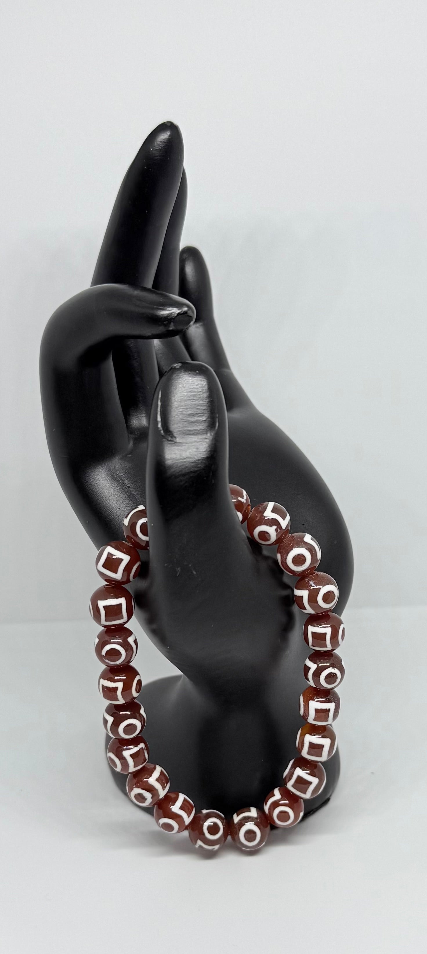 This Agate bracelet is made with 10 mm beads on stretch cord.