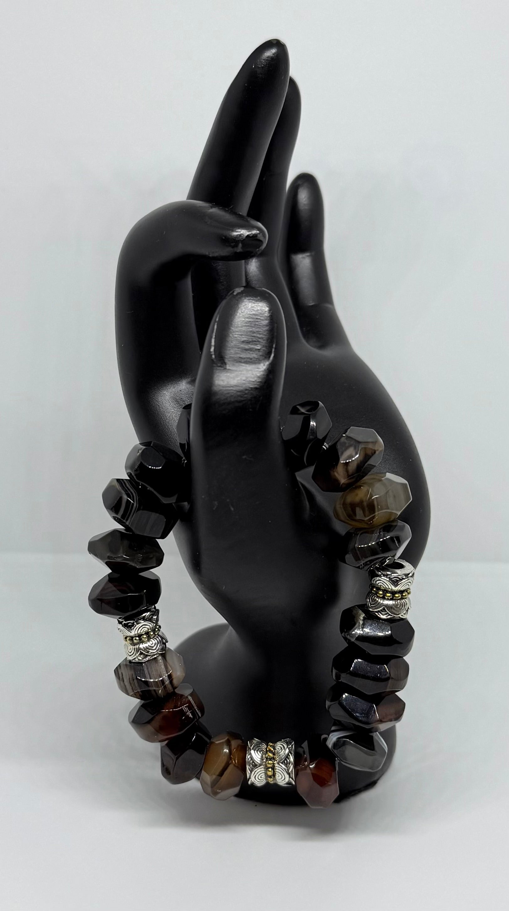 This Faceted Banned Agate bracelet is made with 8x14 mm rondelle beads and round/ tube African Brass beads on stretch cord.