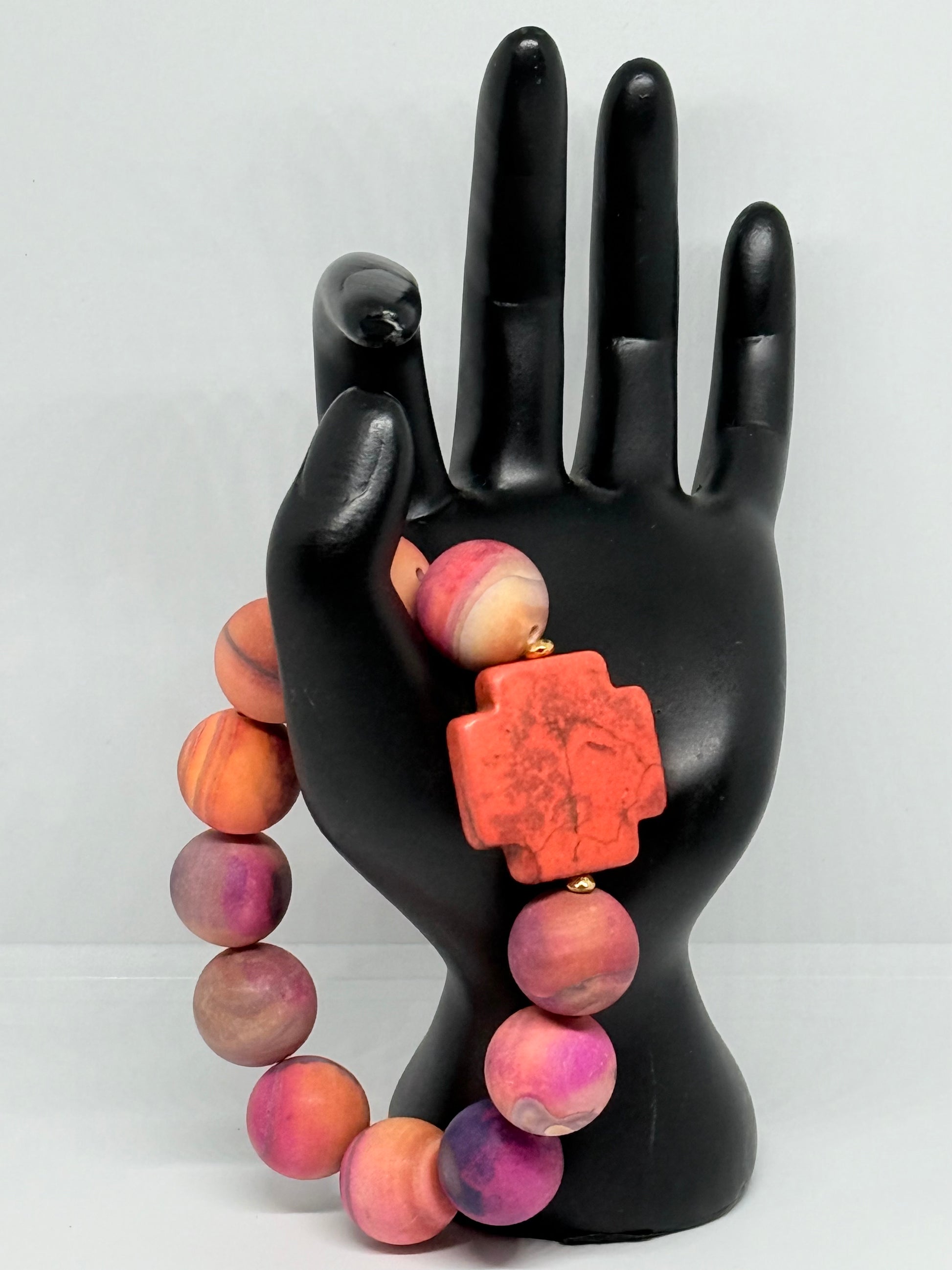 This Agate bracelet is made with 18 mm beads on stretch cord.