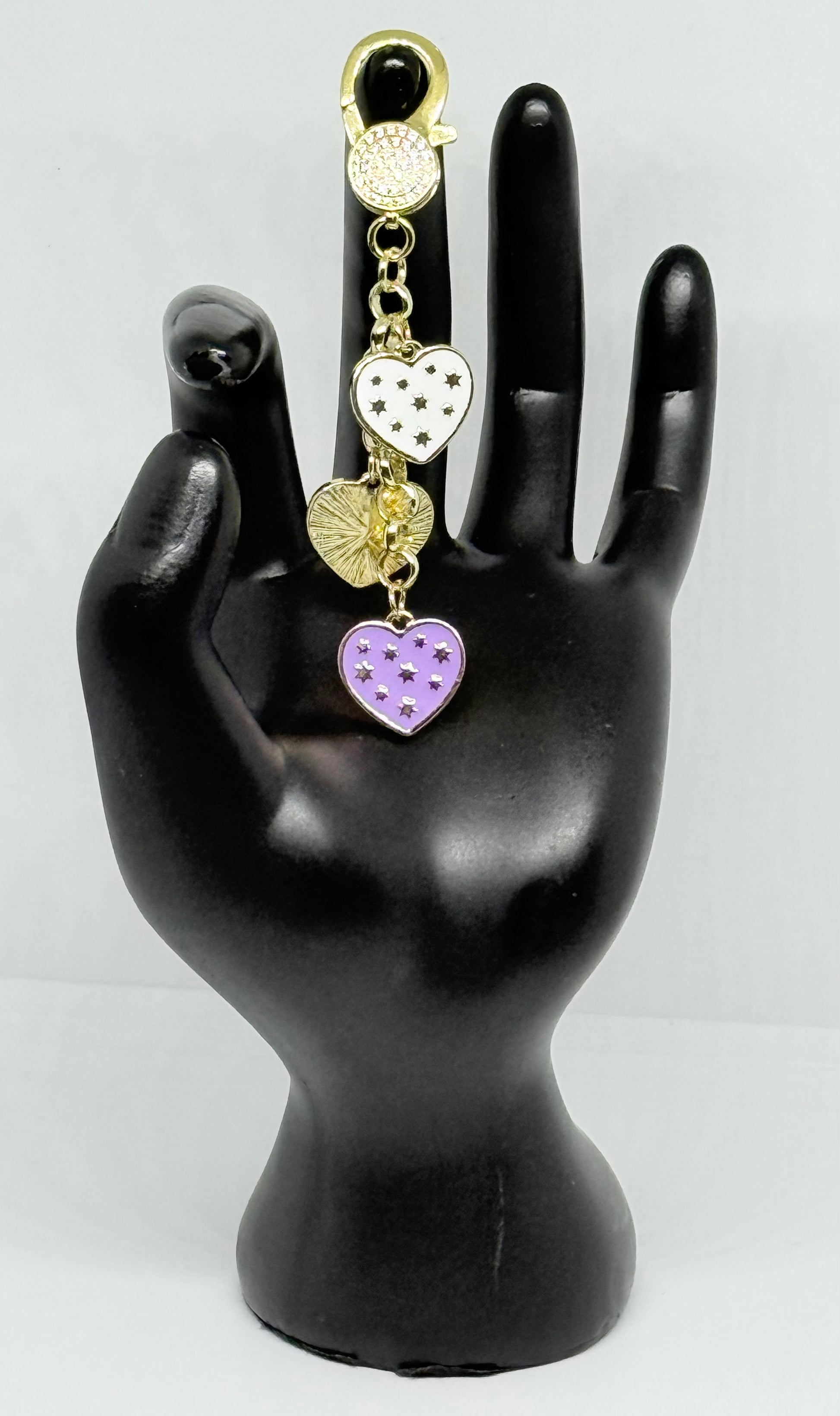 This Charm is 3.5" on Gold Plated chain with Heart and Star Charms and a CZ Lobster Hook.